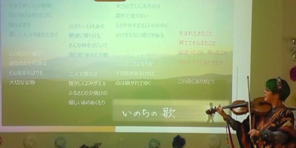クリスマスソングやバイオリン楽曲の他、南部小学校の合唱部の有志とのコラボ演奏や、ディズニー・ジブリ曲も演奏され、「ふるさと」は会場の皆さんも一緒になって合唱しました。